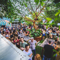 The venue offers a unique twist with its rotating food trucks, ensuring varied dining experiences that complement the lively ambiance. As you sip on expertly made cocktails, you can enjoy the eclectic mix of vibes, with both lounge seating and a club-like feel. It's a place where friends gather, sharing laughs under the big trees or enjoying live DJ sets as the night unfolds.