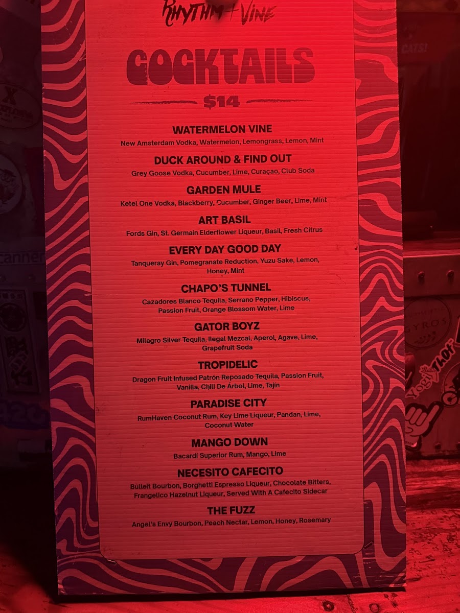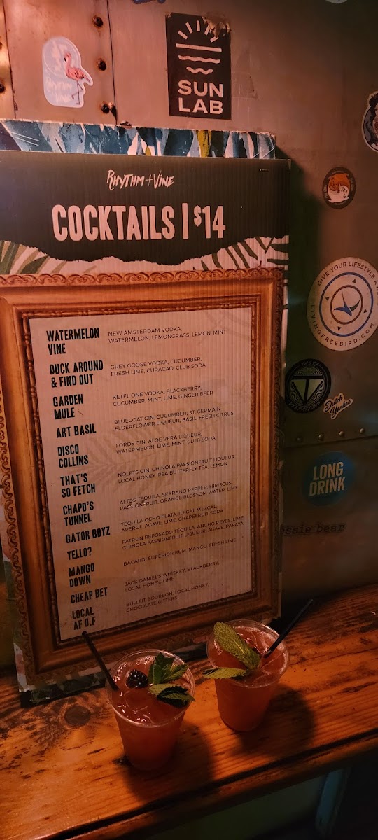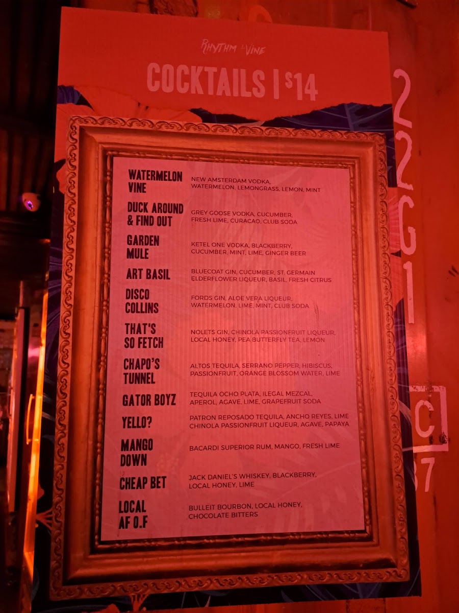 Welcome to Rhythm & Vine, a vibrant destination located in Fort Lauderdale, where drinks and music harmonize in an inviting atmosphere. With an impressive selection of signature cocktails, guests can indulge in creations like the refreshing Garden Mule and the bold Chapo's Tunnel, each crafted with fresh, in-house ingredients.